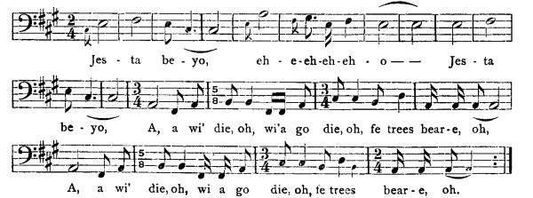 [1. The song sung is the Koromanti Death Song, always used by the Maroons at a burial.]
