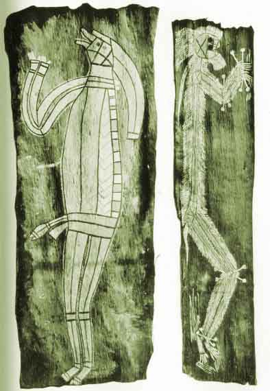 In the case of mythical beings, or Mormo, no such delineation of internal, anatomical details is attempted, because, perhaps, the native does not associate with them such mere animal traits, but it will be noticed that in all cases the sex is unmistakable. They are evidently drawn to represent the external features which are associated with them in the native mind.