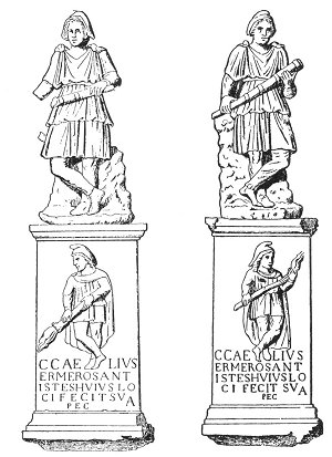(Discovered in 1861 near the ruins of a Roman fort, in the Odenwald, Hesse. T. et M., Plate VI.)