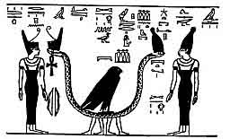 The Menenui serpents and the goddesses of the South and North. The axe of god and the solar disk.