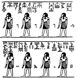 "These are they who are outside Het-Benben, and they see Ra with their eyes, and they enter into his secret (or, hidden) images that which is theirs is apportioned, and the SENNU gods bring it. [And Ra] saith unto them:--'My offerings (or, provisions) are from your offerings, and my nourishment is from your nourishment which is to you, O ye who are in my secret places. I protect my secret things which are in Het-Benben. Hail to you! Your souls live, and their offerings are the offerings of KHUTI.' TUATI saith unto them:--'O ye gods who dwell in the Tuat, who are in the divine [places] of the governor of Ament, to whom what is their due is given upon their ground, who lie down upon their own lands, your own flesh is to you, ye have gathered together your bones, ye have knit together your members, and ye have collected your flesh. There are, moreover, sweet winds to your nostrils, ye have girded on your apparel, and ye have put on your wigs.'