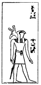 [paragraph continues] Here, from time immemorial, existed a temple dedicated to the Sun-god, and attached to it was a college of his priests, who from a very remote period were renowned for their wisdom and learning. They called their god TEM or ATEM and in later times, at least, he