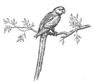 Then Vicram Maharajah Parrot said to the other parrots, 'Do you not see these crows have all sorts of seeds and fruits in their beaks, which they were carrying home to their little ones? Let us quickly drive them away, lest some of these fall down under our tree, which, being sown there, will spring up strong plants and twine round the trunks, and enable our enemy the hunter to climb up with ease and kill us all'