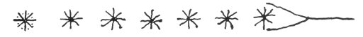 161:5 Here the count recommences for no apparent reason. The feathers in the picture no doubt represent Kukulcan, or Quetzalcoatl, the feathered serpent. The stars in the picture may refer to the four Venus periods of the Dresden Codex. It will be recalled that the Mexicans believed that Quetzalcoatl became the planet Venus after his death.