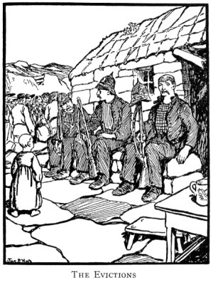When the last eviction had been carried out a division was made: half the party went off with the bailiff to search the inner plain of the island for the cattle that had been hidden in the morning, the other half remained on the village road to guard some pigs that had already been taken possession of.