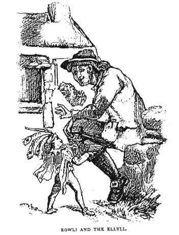 The Ellyllon are the pigmy elves who haunt the groves and valleys, and correspond pretty closely with the English elves. The English name was probably derived from the Welsh el, a spirit, elf, an element; there is a whole brood of words of this class in the Welsh language, expressing every variety of flowing, gliding, spirituality, devilry, angelhood, and goblinism. Ellyllon (the plural of ellyll), is also doubtless allied with the Hebrew Elilim, having with it an identity both of origin and meaning. [Pughe's 'Welsh Dictionary.' (Denbigh, 1866)] The poet Davydd ab Gwilym, in a humorous account of his troubles in a mist in the year 1340, says: