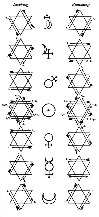 The Banishing Ritual is identical, save that the direction of the Hexagrams must be reversed. {24}